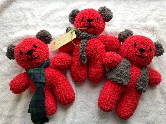 A large bear that could become a lifelong friend. They come in many colours which I hand knit in the softest wool. I will do my best to accommodate your colour wishes. They are 30 cm high and stuffed with organic sheep fleece. €32 each, personalised for €34 (name sewn on etc)